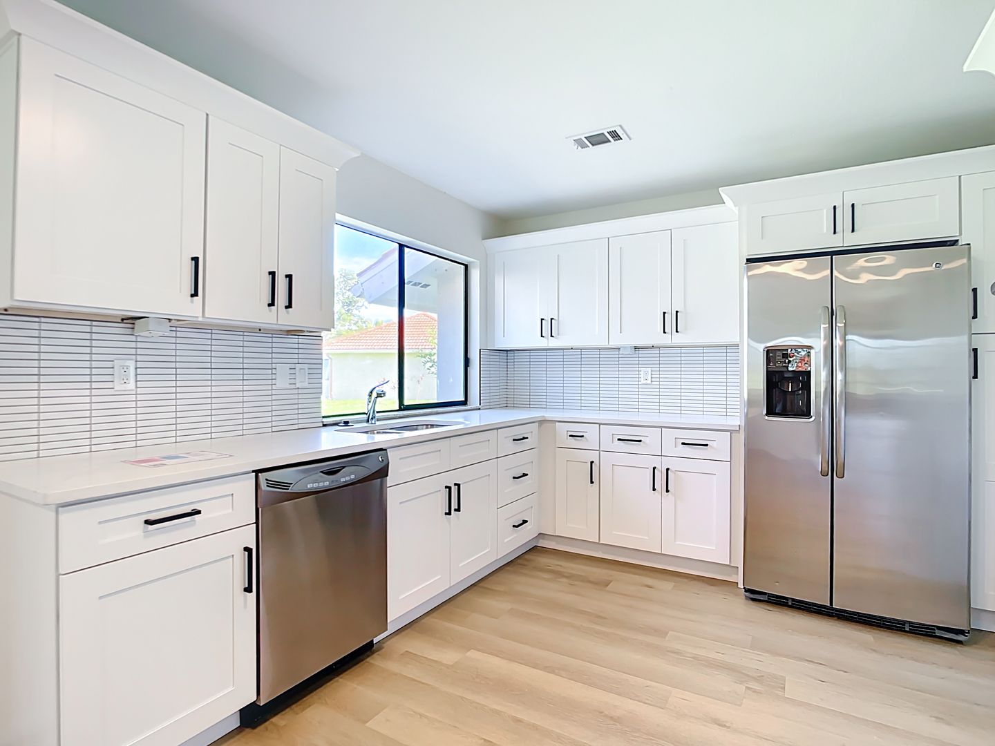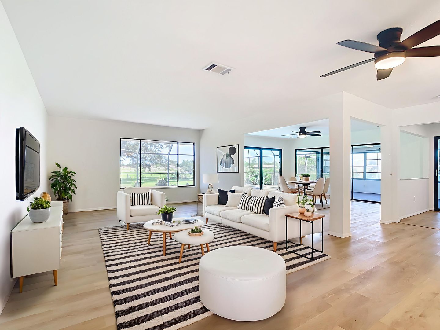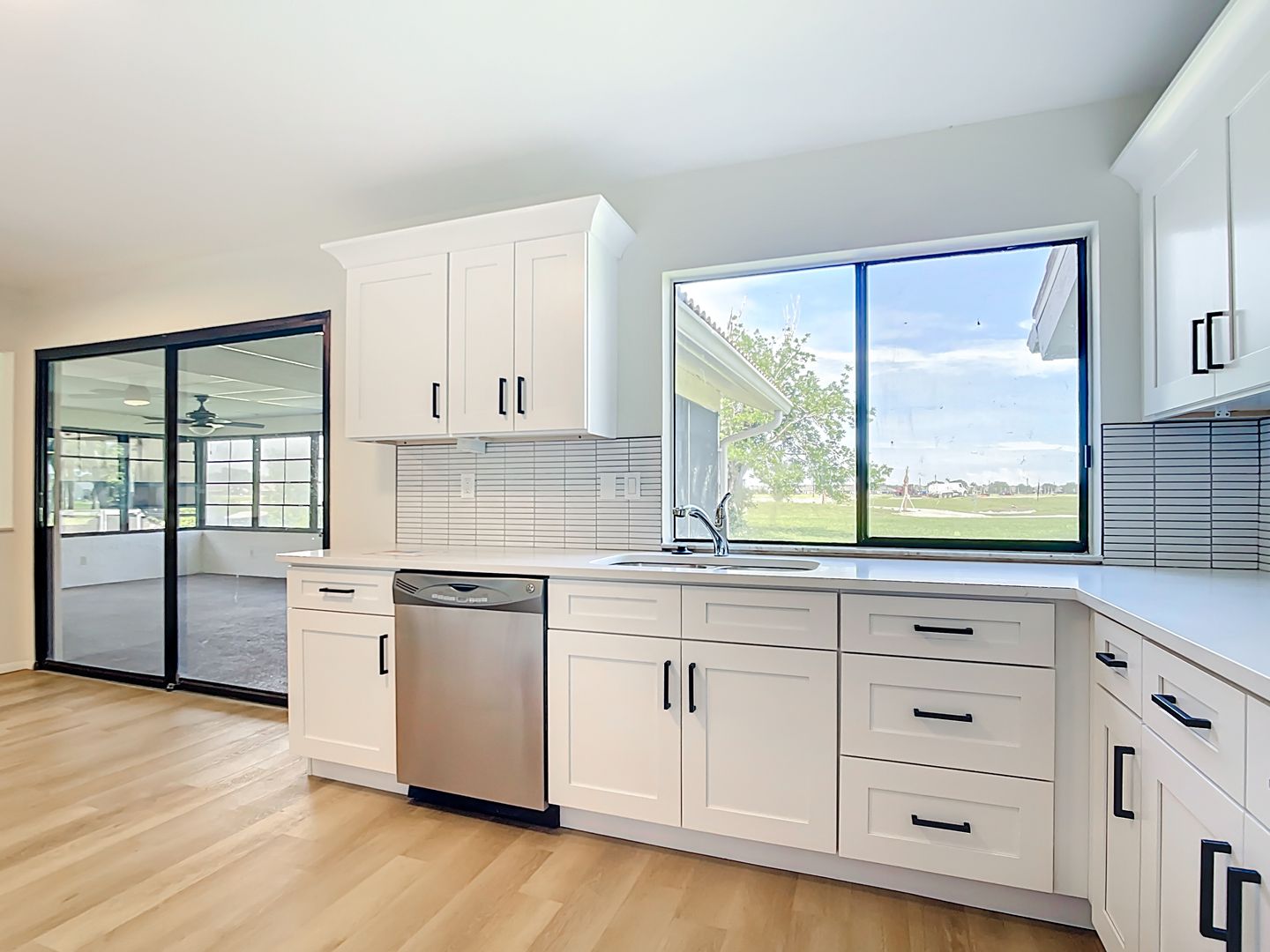 Experience this newly renovated 3-bedroom, 2-bath home in North Port, designed for stylish Florida living. It features an open floor plan with luxury vinyl plank flooring and fresh paint throughout. The updated kitchen includes stainless steel appliances, white cabinetry, and a stylish tile backsplash.