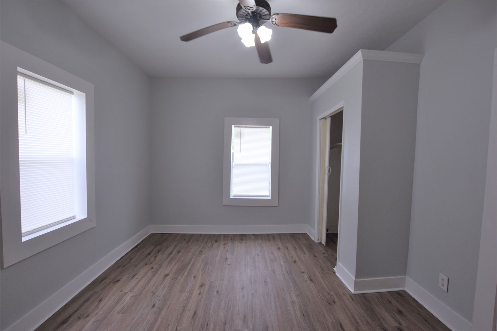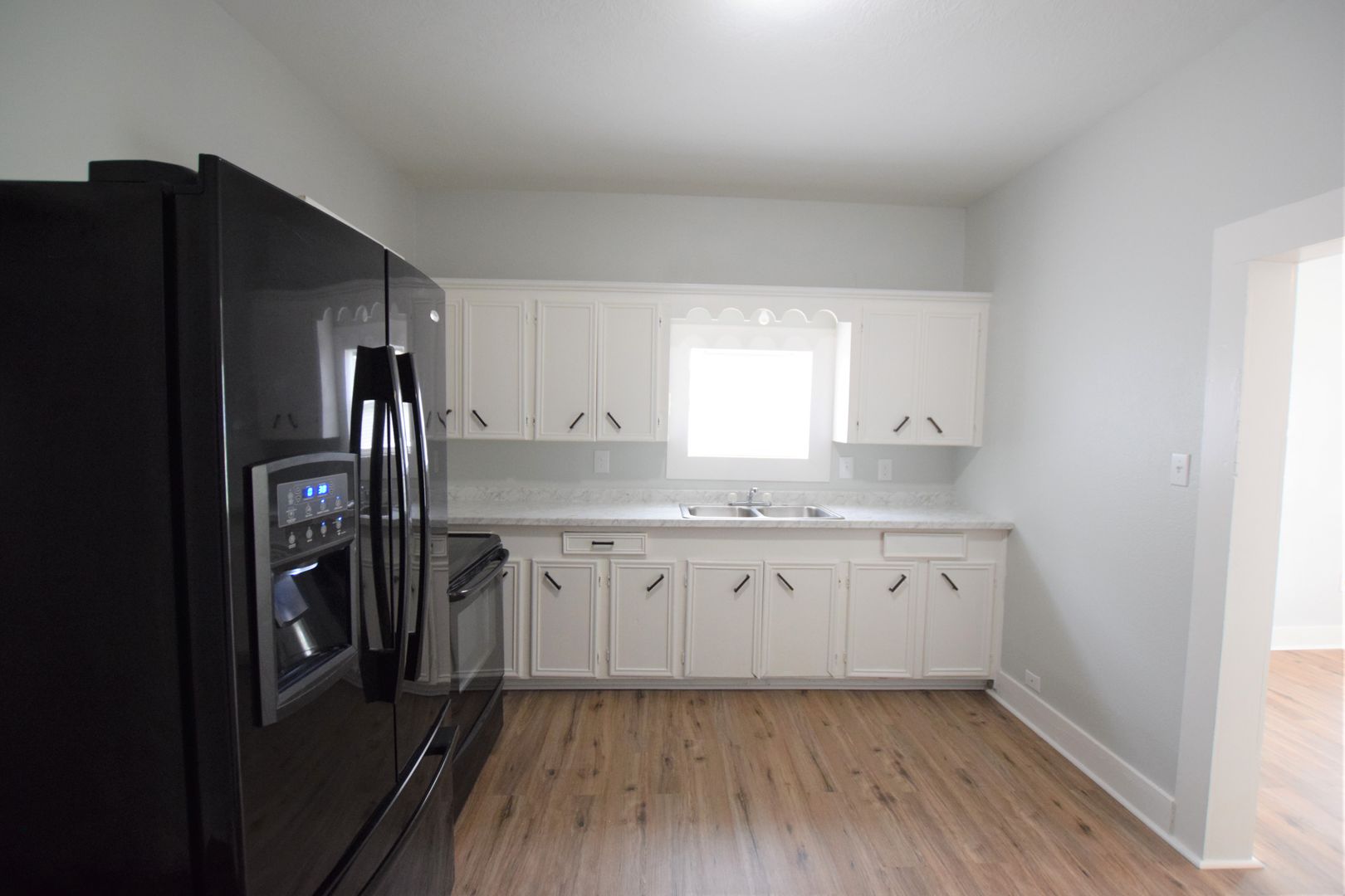 Newly remodeled two bedroom, one bath duplex on large lot.